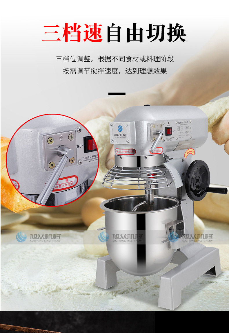 SZM-10A搅拌机,三档速自由切换。三档位调整,根据不同食材或料理阶段按需调节搅拌速度,达到理想效果。强劲动力,源于强芯配置纯铜电机,满足高强度需求,坚固耐用大功率电机,澎湃动力,和面有力更均匀。