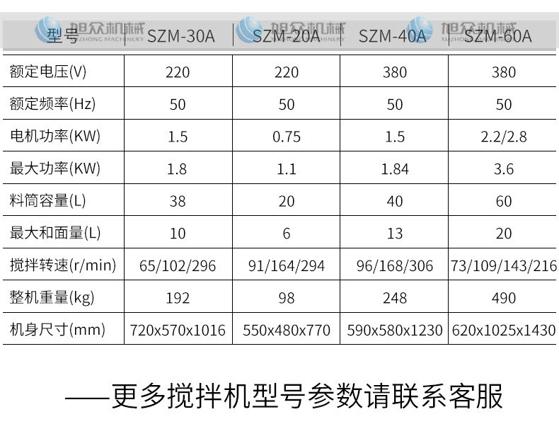 名称SZM-10A搅拌机 电源220V(见机器铭牌) 功率0.62KW 产量【最大和面量】1L 尺寸510X480X770mm 重量76kg 规格联系销售员 其他