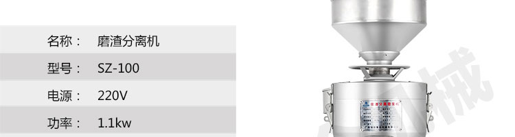 SZ-100-磨渣分离机小蝌蚪吧视频黄色版,适用于把豆制品磨碎分离浆和渣;适用于豆制品厂、饮食服务业、食堂、饭店及个体商户使用。