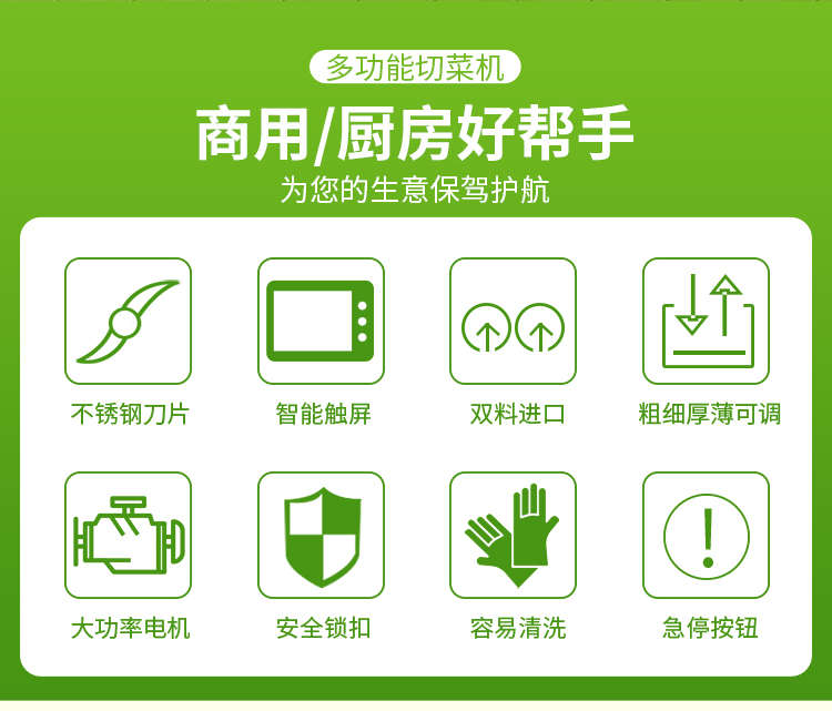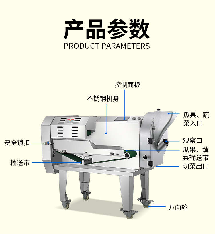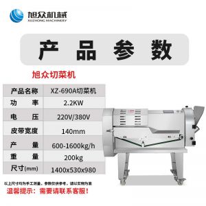 XZ-690A型多功能切菜机,工作效率高,帮你省人工费。1小时可切600kg-1600kg/h,1台机器等于多名厨师同时为您工作。一机多用,可切瓜果、蔬菜、药材,刀片可进行更换,设计周到,结构合理,简单轻松应对。