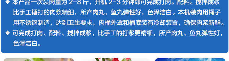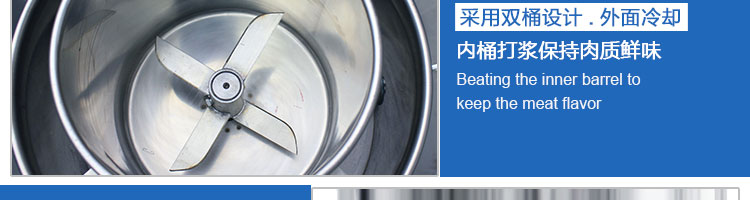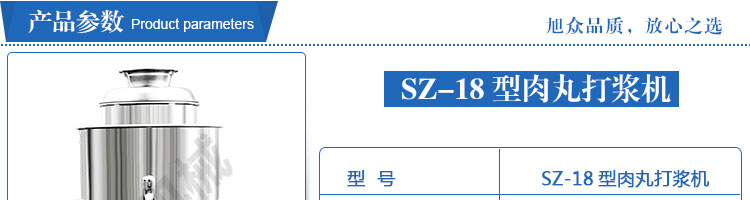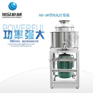 SZ-18型肉丸打浆机,本机装肉用桶子采用不锈钢制造,达到卫生要求,肉桶外罩和桶底装有冷却装置,确保肉浆新鲜。比手工的打浆更精细,所产肉丸、鱼丸弹性好,色泽洁白。
