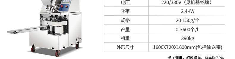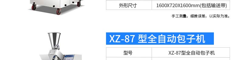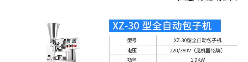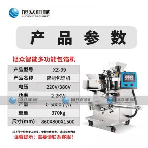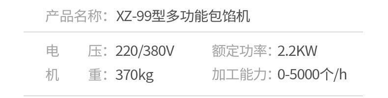 名称XZ-99包馅机 电源220/380v 功率2.2kw 产量联系销售员 尺寸860*800*1500mm 重量370kg 规格联系销售员 其他